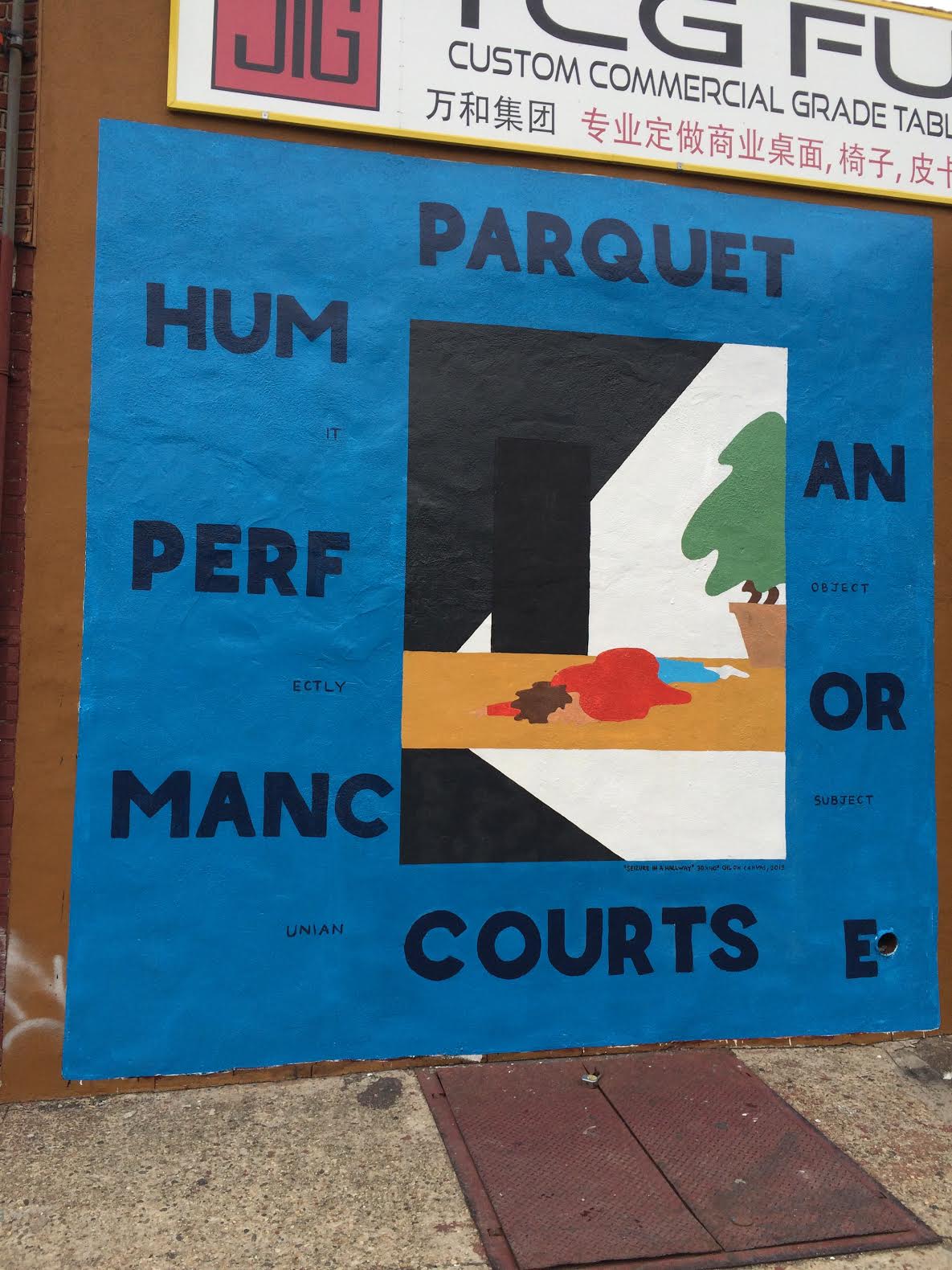 It would appear that Parquet Courts are gearing up to release a new album. The band played a surprise show at Brooklyn's Baby's All Right last week where they debuted a bunch of new songs, as Brooklyn Vegan points out, off of an as-yet-unannounced forthcoming release. A new mural off of the Jefferson L train stop in Bushwick (pictured above) suggests that the release will be titled Human Performance. Rough Trade Records Instagrammed the creation of the mural as well, which you can check out below.