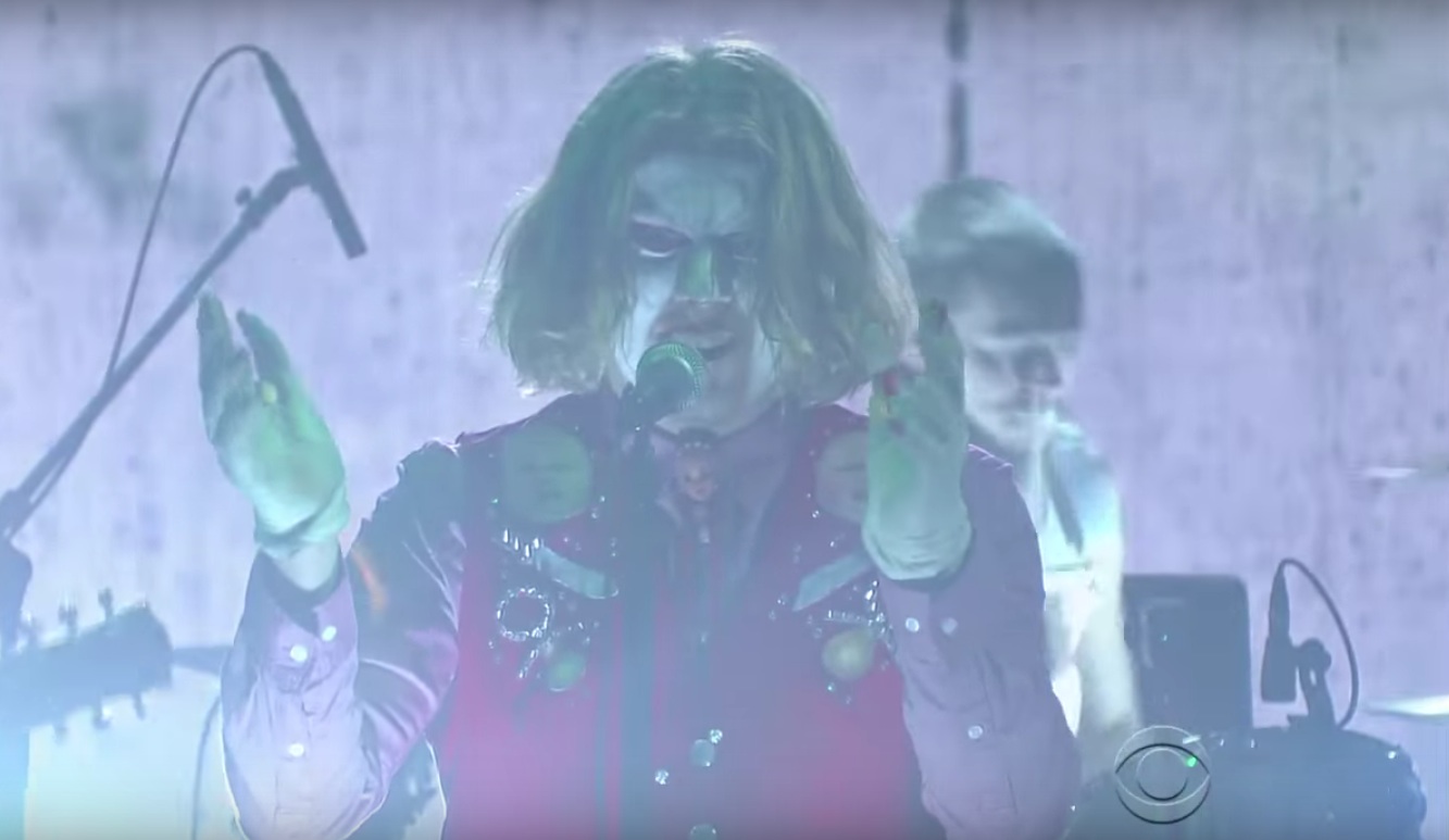 Credit Ty Segall with using a rare moment of mainstream visibility to make an impression. The California garage-rock king released the bugged-out psychedelic album Emotional Mugger last month, and last night, he was the musical guest on the Late Show With Stephen Colbert. Segall and the Muggers, his new touring band, came out armed with evil-mime facepaint, serial-killer jumpsuits, and a big bag of candy worms. They played "Candy Sam," one of the many unhinged songs from the new album. I really don't want to talk about the things they did while performing because I just want you to watch it and experience it for yourself. Suffice to say, Colbert looked slightly concerned by the time it ended. Watch it below.