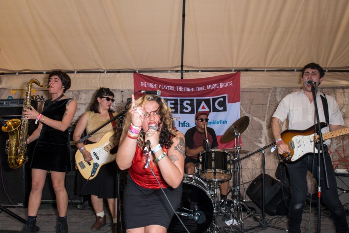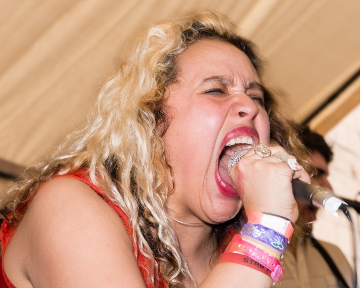 The most empowering moment of Downtown Boys' set, however, arrived about midway through, when Ruiz looked out at the audience and said: "Darkness is not a synonym for grotesque." She was talking about skin -- the same brown "American Skin" that made the aforementioned Amadou Diallo a victim of police brutality so many years ago, before Black Lives Matter was at the forefront of political discourse. Ruiz walked through the audience and continued to deconstruct the word "darkness" as a loaded, nuanced term. It's a stand-in for "unknown" or "unfamiliar," and as Ruiz continued to pontificate, everyone who paid any attention to her opening monologue knew exactly what Downtown Boys would play next.