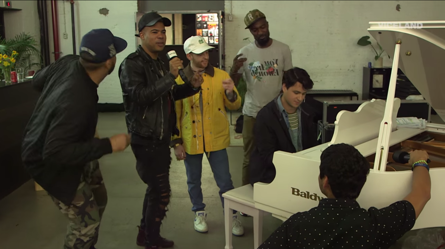 At the end of 2014, the iLoveMakonnen, Ezra Koenig, and Despot teamed up for an excellently gloomy remix of Makonnen's "Down 4 So Long." Last night the trio found themselves together again in the Vice offices, where they collaborated on the spot. Actually, Despot kind of just stood there with podcast/Twitter stars Desus & Mero while Makonnen sang over Koenig's piano part. So consider it a freestyle of sorts; it's definitely a step up from Makonnen's other freestyle this weekend, and really I imagine most Makonnen songs come into the world this way.