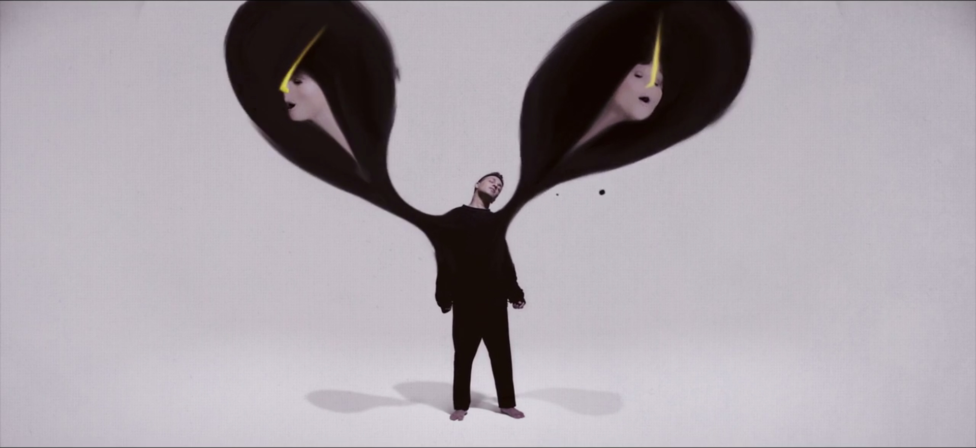 London-based producer and singer-songwriter Anil Sebastian deftly mixes lush yet minimal R&B-kissed electronic soundscapes deftly with artful instrumentation and feathery vocals floating above. He's set to drop his debut album Mesonoxian in exactly two weeks. An early single is the beautiful "Closer," and today it receives an equally stunning visual accompaniment. Sebastian, cloaked in all black, stoically sings as clever, inventive animated effects come off of him. Darkness zooms around him with splashes of color interjecting, and for the operatic climaxes a woman extends out of his shoulders like cells reproducing in mitosis. The visual elements rise and fall exquisitely with the expertly controlled shift in temperament that the song displays. Here's what Sebastian had to say about the clip directed by Rino Stefano Tagliafierro: