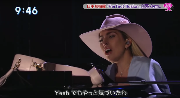 With Lady Gaga's more intimate Dive Bar Tour now behind her, she's moved onto some more traditional means of promoting her new album, Joanne, like appearing on Japanese morning talk show Sukkiri. She did a deliciously dramatic piano ballad rendition of lead single "Perfect Illusion" -- a track she notably did not play when she on Saturday Night Live a few weeks ago -- and sat down for an interview afterwards, where she was gifted a bunch of Sanrio merch. Watch below.