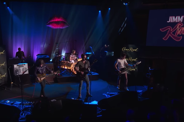 A few weeks ago, Kings Of Leon scored their first Billboard 200 #1 with their new album, Walls, and they've been hitting the recorded performance circuit ever since: first on The Tonight Show, then on BBC Radio 1's Live Lounge, and last night they performed on Jimmy Kimmel Live. They did "Waste A Moment" and "Reverend," and you can watch their performance of both below.