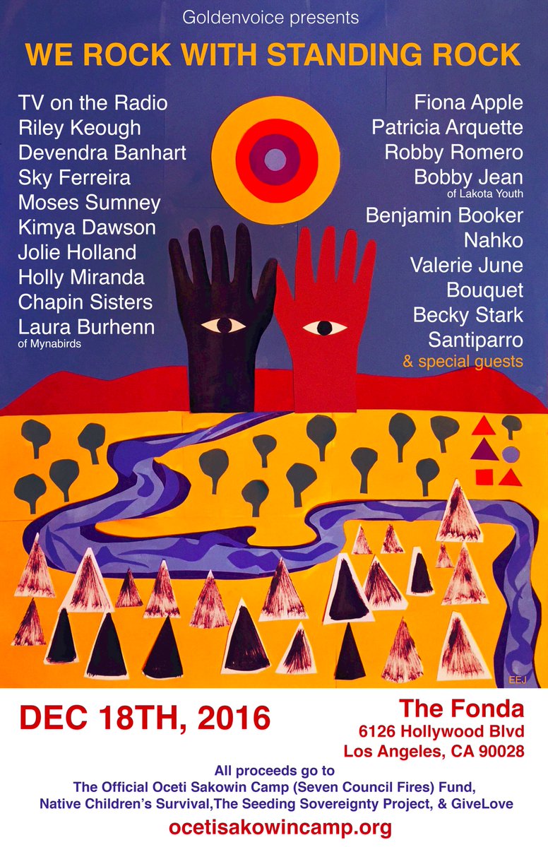 Fiona Apple, TV On The Radio, Sky Ferreira, Devendra Banhart, Moses Sumney, and more will perform at a benefit show in Los Angeles on 12/18 called We Rock With Standing Rock. Proceeds for the event will go towards the Oceti Sakowin Camp fund, Native Children's Survival, Seeding Sovereignty Project, and GiveLove. The lineup also includes Kimya Dawson, Riley Keough, Patricia Arquette, Robby Romero, Benjamin Booker, Holly Miranda, and more. It will take place at The Fonda and tickets go on sale on 12/9 (Friday).
