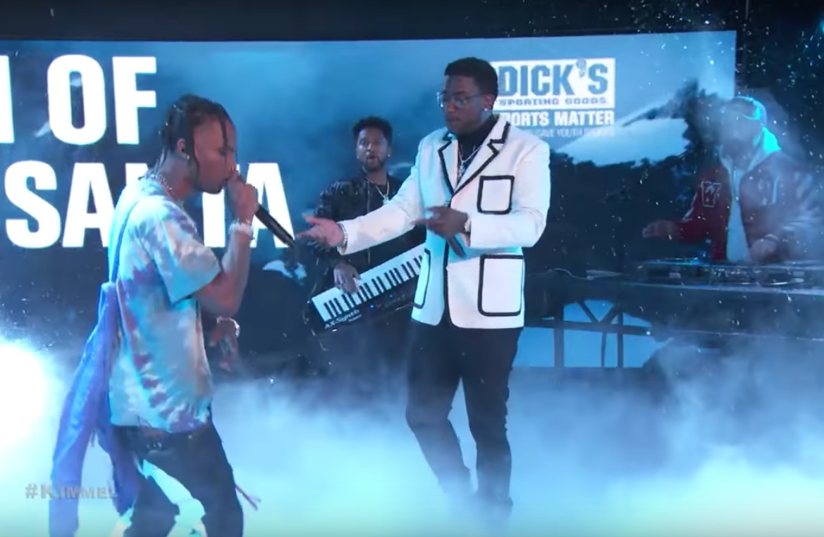 Gucci Mane is now cranking out new albums so quickly that the promo machine can't catch up. Later this week, Gucci will release his new LP The Return Of East Atlanta Santa. But last night, he was on TV doing the first single from Woptober, his last album -- which, after all, is barely two months old. On Jimmy Kimmel Live, Gucci did the banger "Last Time" with robo-voiced guest Travis Scott, who seemed to understand that he was a supporting player and who acted reasonably subdued. The stage was full of dry ice and fake snow, and Gucci had a DJ and a keytaurist backing him up. He also wore a fucking amazing suit. Network censors didn't like his "they call me Gucci Mane Picasso cuz I painted they face" line, but they were apparently OK with all of Travis Scott's lyrics about drugs. Watch the performance below.