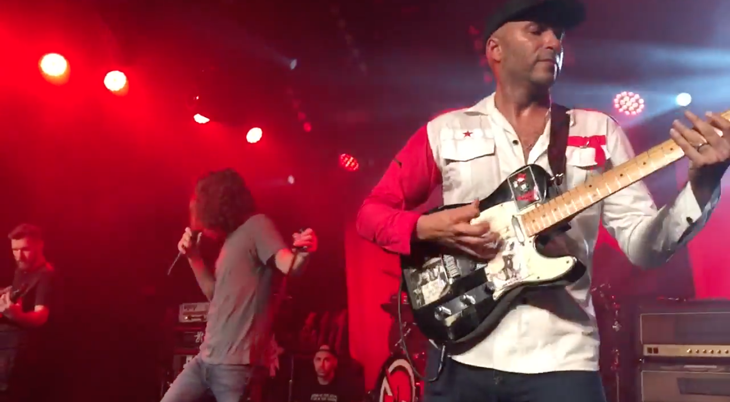 Prophets Of Rage, the supergroup combining members of Rage Against The Machine, Public Enemy, and Cypress Hill, held its Anti-Inaugural Ball in LA last night, and as promised, the RATM alumni's previous supergroup Audioslave reunited for the first time in 12 years. The Chris Cornell-fronted combo performed a three-song set at Teragram Ballroom along with Prophets, Vic Mensa, Jackson Browne, Jack Black, and the Los Angeles Freedom Choir. Watch footage of Audioslave performing "Cochise," "Like A Stone," and "Show Me How To Live" below.