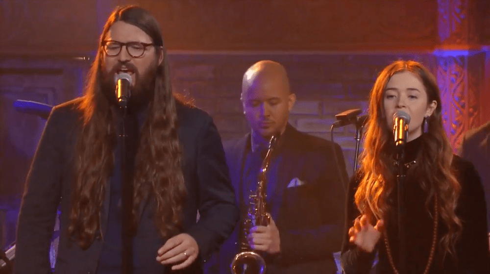 English singer-songwriter Flo Morrissey and Richmond-based musician Matthew E. White released a collaborative covers album, Gentlewoman, Ruby Man, last month, and last night they were on The Late Show With Stephen Colbert to perform their cover "Grease," the Grease movie theme song that was written by Bee Gee Barry Gibb and sung by Frankie Valli. They were joined by house band Jon Batiste And Stay Human. Watch below.