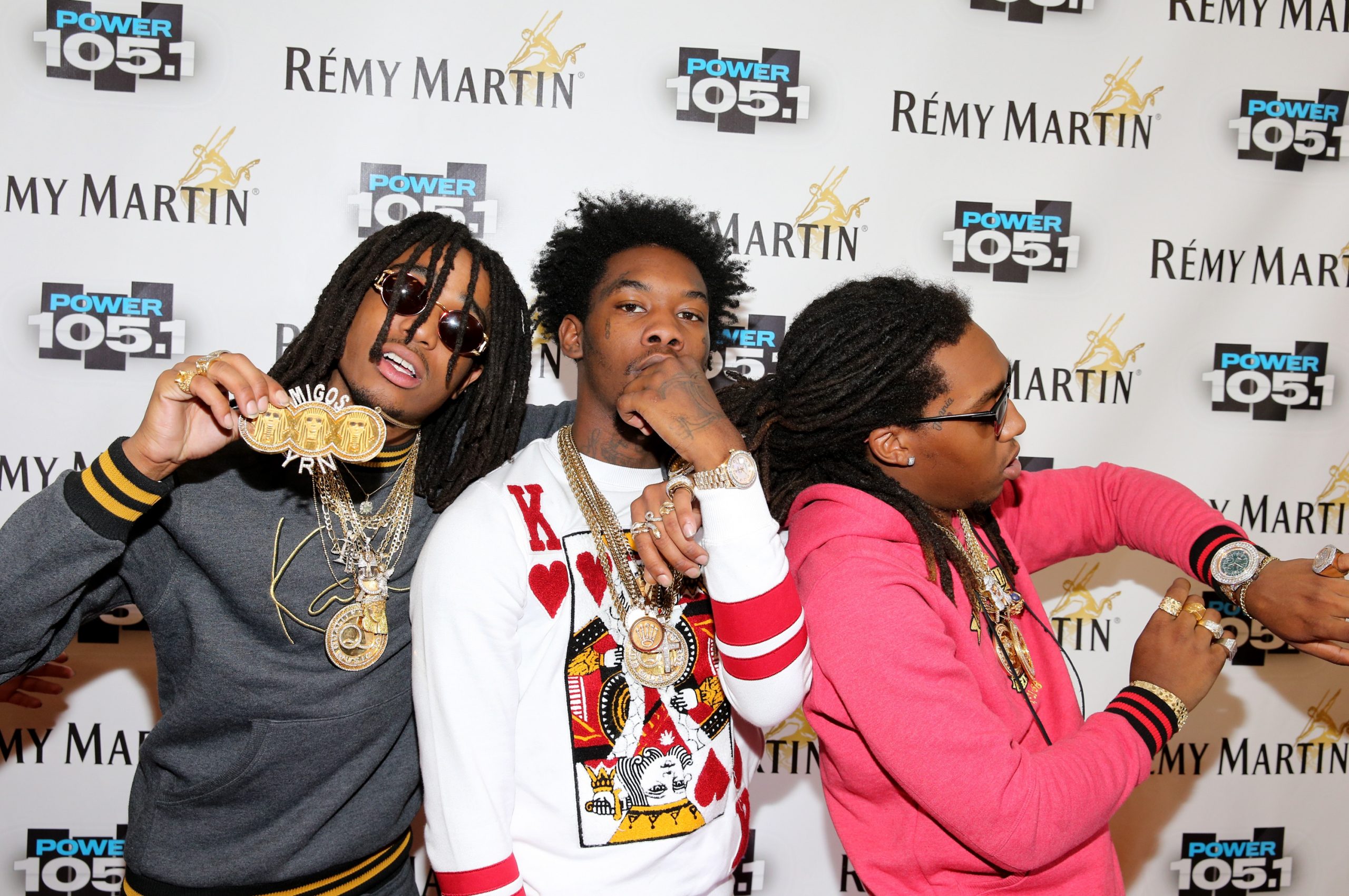 NEW YORK, NY – OCTOBER 30: (L-R) Kirshnik ‘Takeoff’ Ball, Kiari “Offset”? Cephus and Quavious “Quavo”? Marshall of Migos attend Power 105.1’s Powerhouse 2014 at Barclays Center of Brooklyn on October 30, 2014 in New York City. (Photo by Neilson Barnard/Getty Images for Power 105.1)