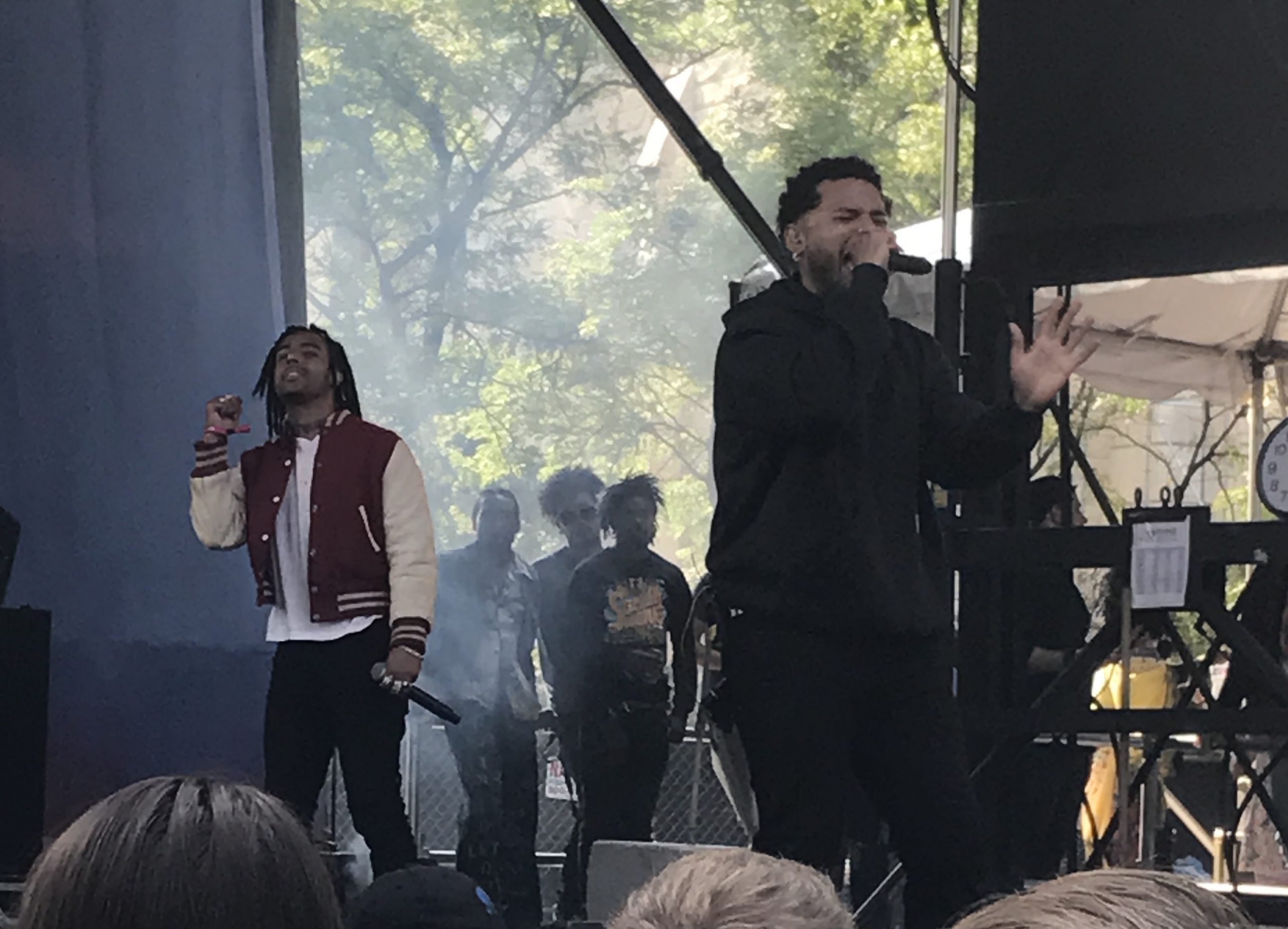"We still alive, Chicago?" Joey Purp came back to that refrain over and over again throughout his set Sunday at Pitchfork Music Festival's Blue Stage. It functioned as your basic pump-up-the-audience exhortation, but as a mantra it ran much deeper. Purp was one of a few hometown heroes at this year's festival, and in keeping with the city's violent reputation, he raps a lot about the jarring reality of watching people you grew up with gunned down. He also raps about watching friends overcoming all that and becoming rich and famous, and judging by his performance Sunday he's well on his way to joining them.