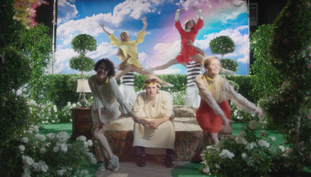 Foxygen have shared a new video for "Avalon," a track off their latest album, Hang, which was released at the beginning of the year. It kicks off with a long faux behind-the-scenes footage that shows a clashing of egos between the band's Jonathan Rado and the director before launching into the video itself, which features a colorful and vibrant backdrop before escalating into an elaborate group dance sequence. Watch below.