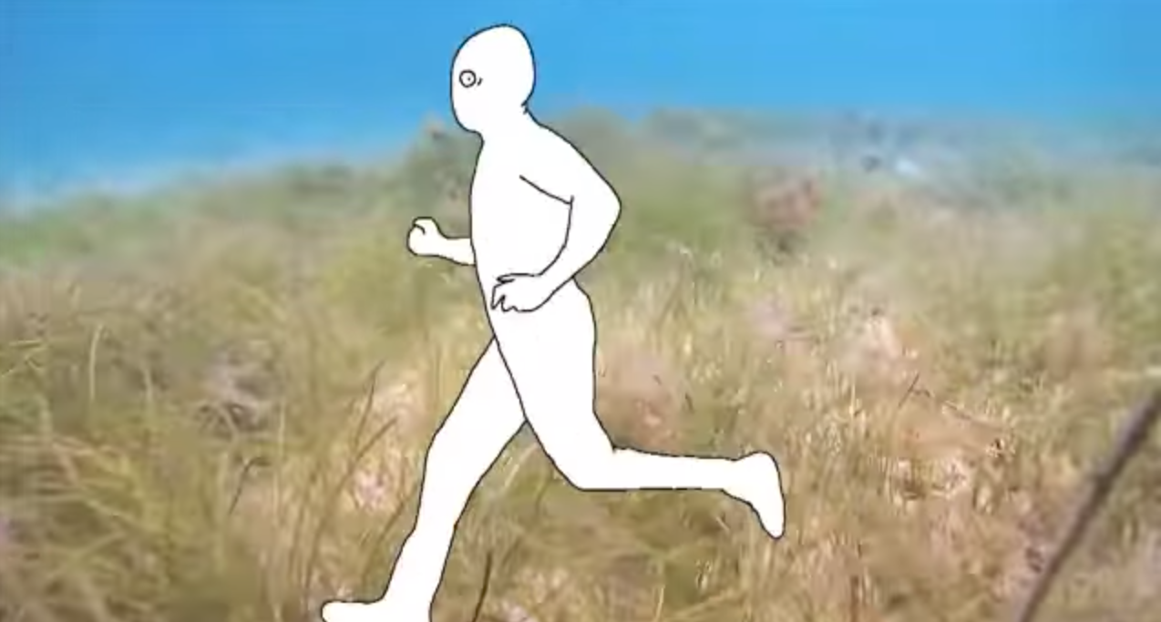 The song is about the five gyres of trash floating in the ocean, I like to think that this little character symbolizes the collective unconscious running from that reality, but I guess it also represents the running against the current that pulls you towards the accumulation of trash. Yin and Yang or something. Plus, I've always dug animation. Thanks Adric.
