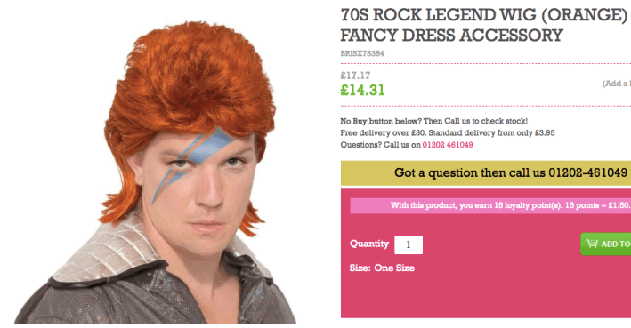 CAN YOU TELL WHO IT IS SUPPOSED TO BE?: Yes, though the makeup on this ‘70s rock legend is just incorrect enough to evade the suspicion of most, as an expert I can tell this is Aladdin Sane David Bowie.