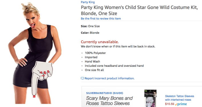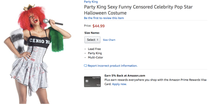 CAN YOU TELL WHO IT IS SUPPOSED TO BE?: Yes, it is clear that the “Lady Glamour” teen is Lady Gaga. In fact, its product description says, “Our teen Lady Glamour red lace Halloween costume outfit makes a great addition to any celebrity costumes, rock star costumes, and lady gaga costumes this Halloween coming up or to any costume party.” Something to remember for this Halloween coming up, or any costume party.