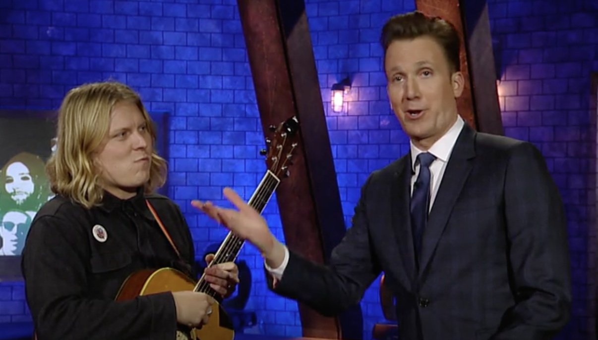 One-man garage-rock factory Ty Segall is getting ready to release his new album Freedom's Goblin, and he's also done the theme music for The Opposition With Jordan Klepper, Comedy Central's satirical new right-wing commentary show. Last night, Segall became the first-ever musical guest on The Opposition. There, he did a nice solo-acoustic version of "My Lady's On Fire," one of the album's early tracks. He also participated in comedy bits throughout the show. Before Klepper would let Segall perform, he made Segall test his food for poison and come up with some conspiracy theories. The two also did a fun little interview after the performance. Check it out below.