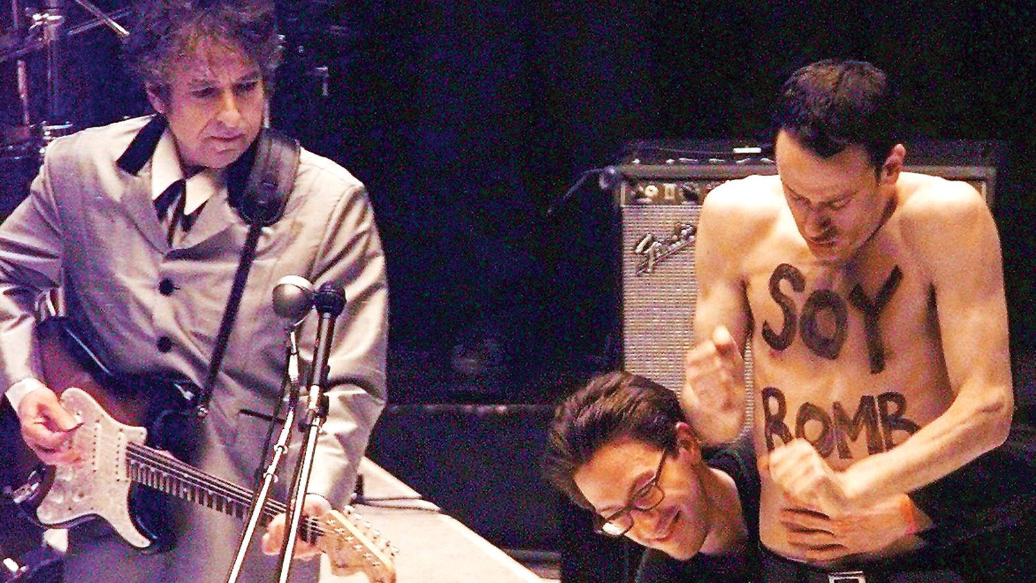 All of that, plus, well, SOY BOMB. That was the message inscribed in big black letters on the chest of experimental artist and comedian Michael Portnoy, as he interrupted Bob Dylan’s “Love Sick” performance to gyrate sans shirt alongside the rock legend for a full half-minute. While the event was confounding to those in attendance, and remains largely unexplained 20 years later, it stands as a pre-Nipplegate, pre-Kanye moment of amusingly harmless award-show anarchy, one which might never be possible in the same way again.