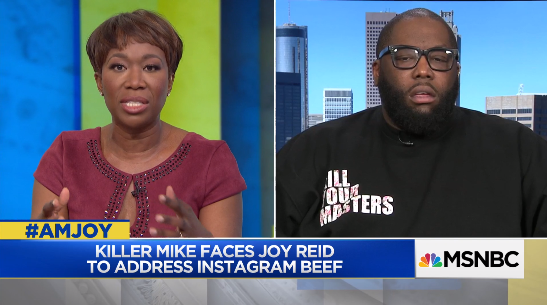 One of the people who criticized Mike for the interview was MSNBC host Joy Reid, who tweeted, "Killer Mike cosigning an organization that traffics in threats against the media (including black women), that ignored Philando Castile, and that pushes gun sales through 'brown/black scare' videos is his choice." And a couple of weeks later, when Reid posed for an Instagram selfie with two other women and wrote that they "rocked the H&M" in the caption, Killer Mike criticized her right back, writing, "So Me doing an interview about black Gun ownership with the NRA is ‘bad’ but u promoting a company that tagged a Black Child a Monkey is ‘good, cool, acceptible.'"