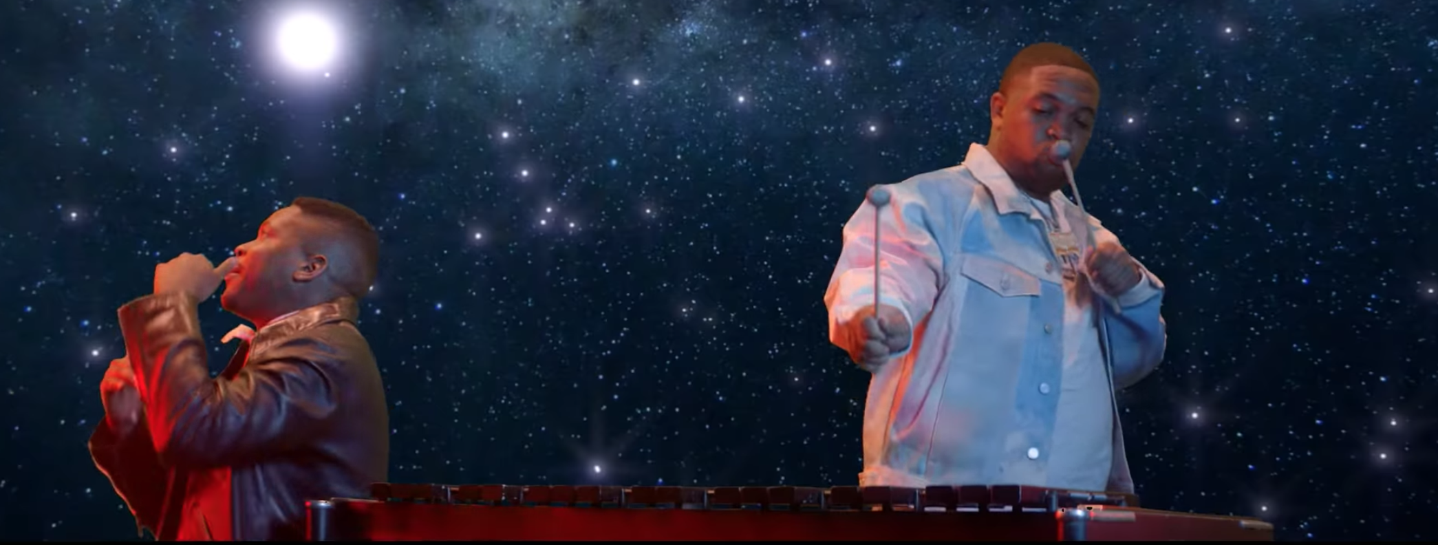 YG rides down palm tree-lined streets, counting money while standing in the sunroof. There's also a shot of DJ Mustard playing a xylophone against a galaxy backdrop, which is now my favorite image. 2 Chainz wears a great pink-and-green tracksuit, Big Sean throws a party in a mock Oval Office, and Nicki Minaj stunts on a giant pink horse. Watch below.