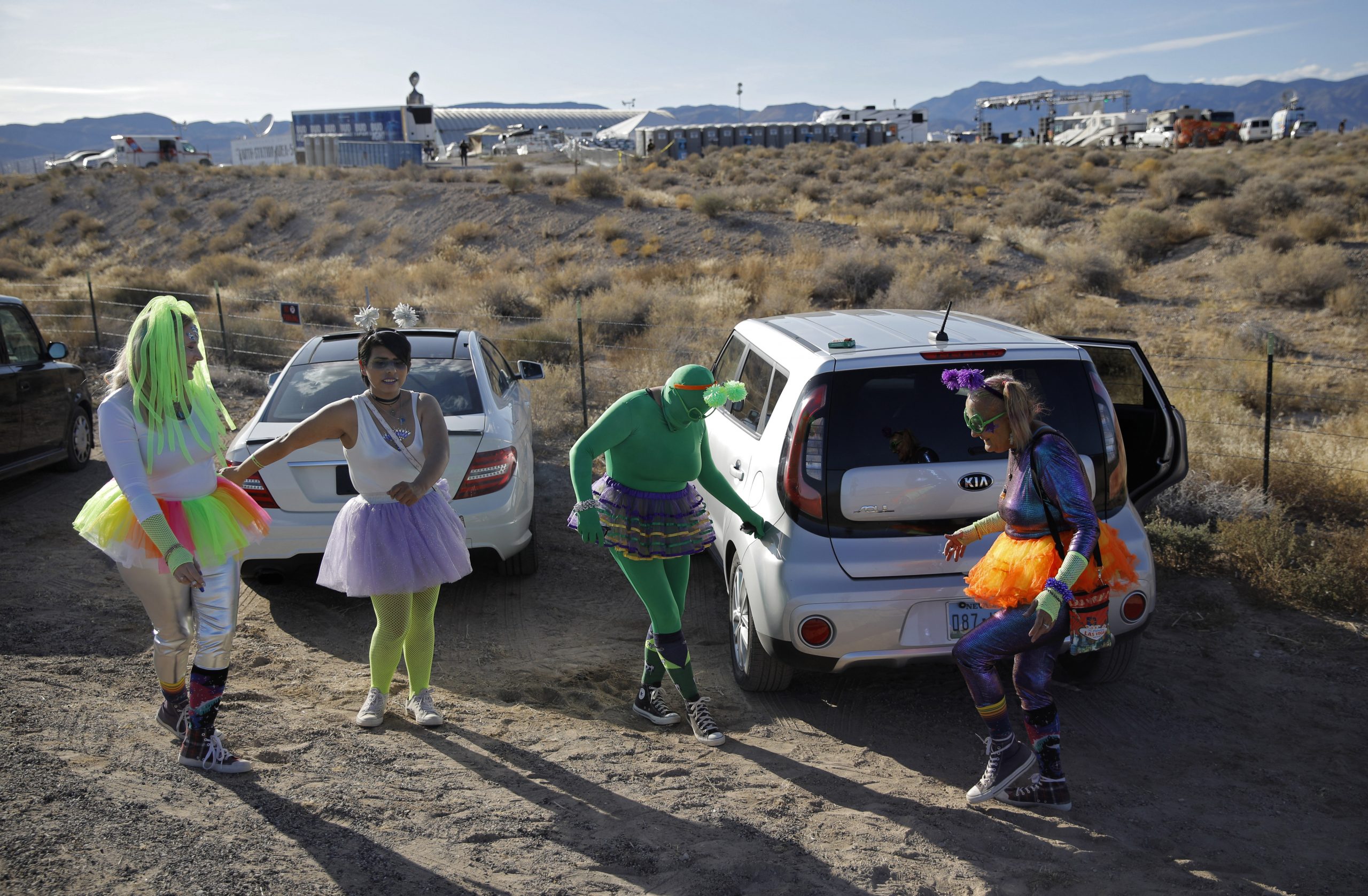 Lee and Holt, about a two-hour drive north of Las Vegas, said revelers gathered until about 4 a.m. at two gates between Hiko and Rachel.