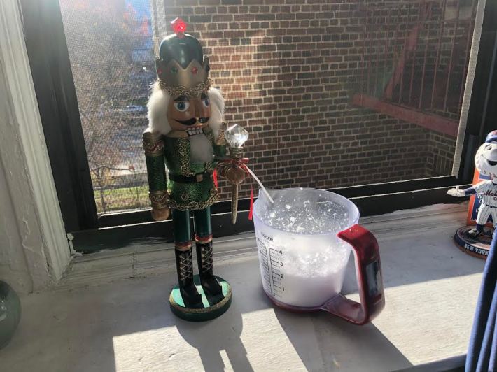 I do not know what to do with this snow. As you can see, it still sits in a measuring cup, one that I will ostensibly someday use again for measuring food although I do not foresee myself getting the fake snow out easily as it is very sticky and its bag tells you not to put it down the drain. What do I do with this substance? What is meant to be done with it? It is a mystery, one as beguiling as a warm scent on a cool breeze. I do not recommend it.