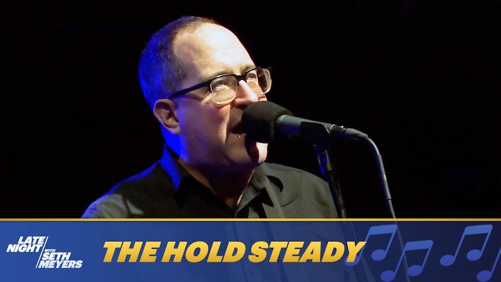 Last week, the Hold Steady came back blasting with their excellent new album Open Door Policy. Last night, the longtime Hold Steady fan, supporter, and friend Seth Meyers welcomed the Hold Steady onto his show as musical guests. Meyers has always had both the Hold Steady and leader Craig Finn on his show at every opportunity. In 2019, for instance, Meyers got the band to record the theme song for his Netflix comedy special, and then he had the band play that song on his show. So of course Meyers was going to bring the band back to his show immediately after their new album's release, and of course they were going to kill it.