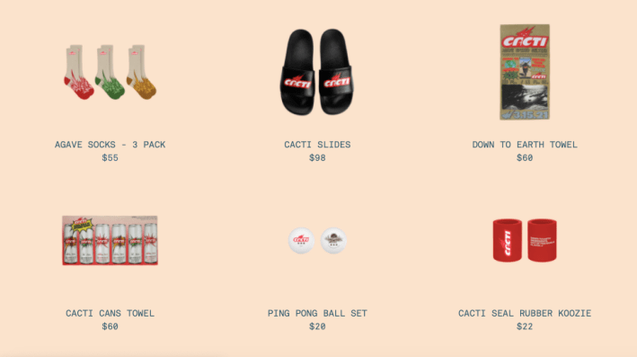 ENTIRETY OF THE BRAND WORLD: I have to imagine this alludes to the brand shop, which includes things like clothing, hats, a clock, an ice cube tray, a ping pong ball set, a soccer ball, and a neon sign for $350. Damn. I hope someone buys that sign. It makes me sad to think about CACTI neon signs sitting in a warehouse somewhere, full of neon potential, waiting and waiting and waiting for their new owners to take them home. "Why doesn't anyone want me?" It's not their fault. They're worthy of love as much as anything is. Now I'm sad. Maybe you should buy one?