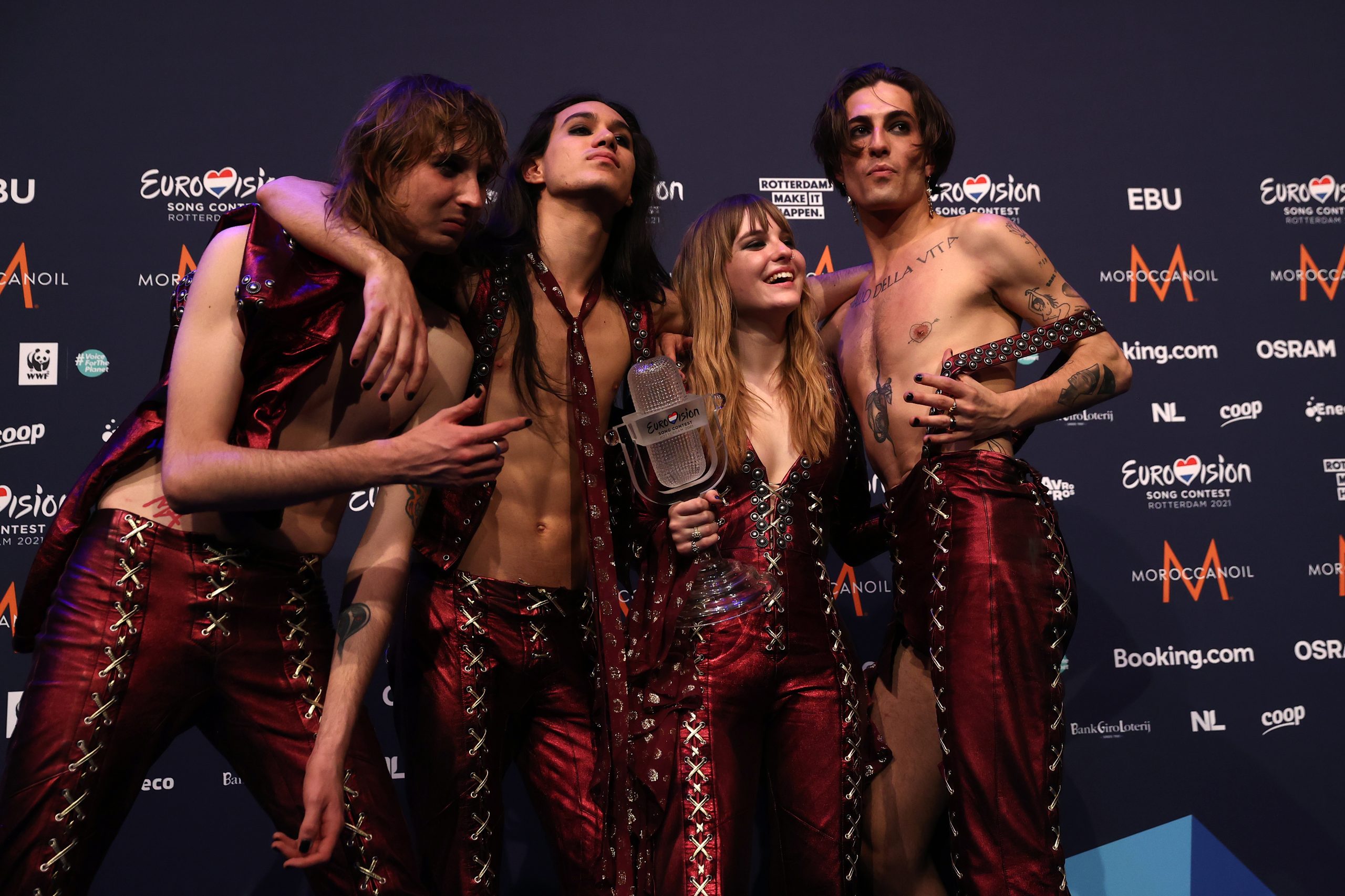 The real breakthrough for Måneskin, though, was a pair of wins at major televised competitions this year. First, in March, they were rare rock champions at Italy’s Sanremo Music Festival. This qualified them to represent Italy at the famed Eurovision Song Contest in Rotterdam, where they also claimed first prize. Their winning song "Zitti e buoni," which translates to "Shut Up And Behave," is funky aggro rap-rock that sounds like it could have popped off at American rock radio in 1999 alongside, like, Loudmouth and Buckcherry. After Måneskin’s Eurovision win in May, "Zitti e buoni" posted the biggest one-day streaming total ever for an Italian artist on Spotify. Eurovision also sent Måneskin’s music flowing onto TikTok, where one meme involved users switching from scrubby or mild-mannered looks to slithering leather-clad rock ’n’ rollers at the drop in "Zitti e buoni."