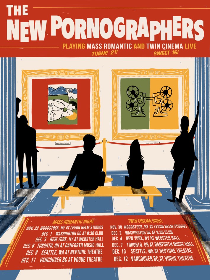 "Everyone wants to be successful but, hand to my heart, I had no delusions of success for the New Pornographers," Carl Newman said of revisiting the album. He continued: "To be here over 20 years later, still in the game, is something that I simultaneously take for granted (you just get used to it) and feel eternally grateful for. Been here so long that we can do one of those 'Let’s play that old album all the way through!' gigs. And we are doing just that. Two nights per city: one Mass Romantic, one Twin Cinema, plus assorted “hits” from our storied career. Bejar is coming and God knows if we’ll get him again. When he moved to Spain two months after Mass Romantic came out, I thought he was done in the band and now 21 years later we’ve convinced him to come along for another ride. Just the nature of our band that it’s a special occasion when all the singers show up. Here’s to you showing up as well!"