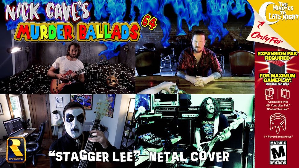 Today, Jordan Olds' videos series Two Minutes To Late Night, which last paid tribute to Toto's "Hold The Line" a month ago, has now returned with a new version of Nick Cave's version of "Stagger Lee." For this latest installment, an all-star team of metal and punk musicians has gotten together to adapt Cave's "Stagger Lee," updating the lyrics slightly but keeping the noisy blues-throb.