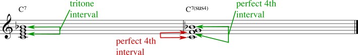 Why do dominant sus chords feel so soothing and “floaty”?Consider that standard dominant 7th chords contain the root, Major 3rd, perfect 5th, and flat 7th. It’s the 3rd that makes the chord feel grounded, because it communicates the chord’s essential quality, or brightness. The flat 7th forms a “tritone” interval with the Major 3rd, which is quite dissonant -- in fact, it’s the most dissonant interval that exists in the Western harmonic system. So the standard dominant 7th chord possess a volatility that craves resolution to a more stable and consonant chord. In contrast, dominant sus chords replace the 3rd with the 4th, so the tritone interval transforms into a “perfect 4th" -- a relatively consonant interval.See Figure 4 below. The resulting sound feels ambiguous, and that’s the salient characteristic that distinguishes quartal harmony from tertian harmony.It possesses a kind of gentle instability, where the chords hover and glide, as though gravity itself has been suspended.