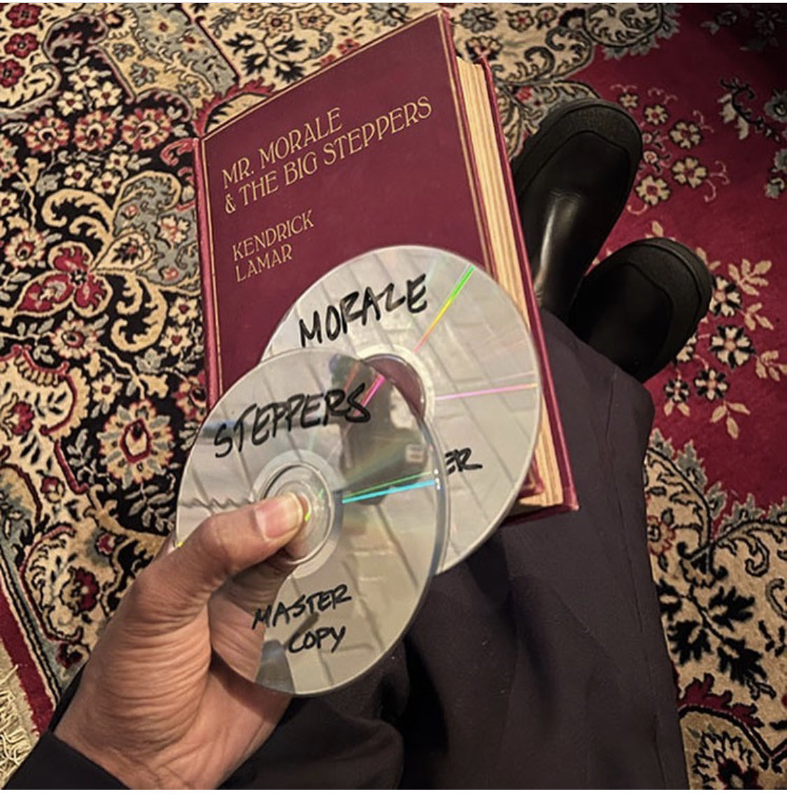 When Kendrick announced the album, the press release at oklama.com indicated that "all factual information for this release will come directly from this source only." As of today, there's a new post at oklama.com featuring the above photo of a book and two burned CDs. The cover of the book has Kendrick's name and the new album title. One disc has "MORALE" and "MASTER COPY" scrawled in Sharpie. The other has "STEPPERS" and "MASTER COPY." Implication: double LP! Friends, get ready to enjoy not one but two discs' worth of new Kendrick Lamar music. And also maybe a book?