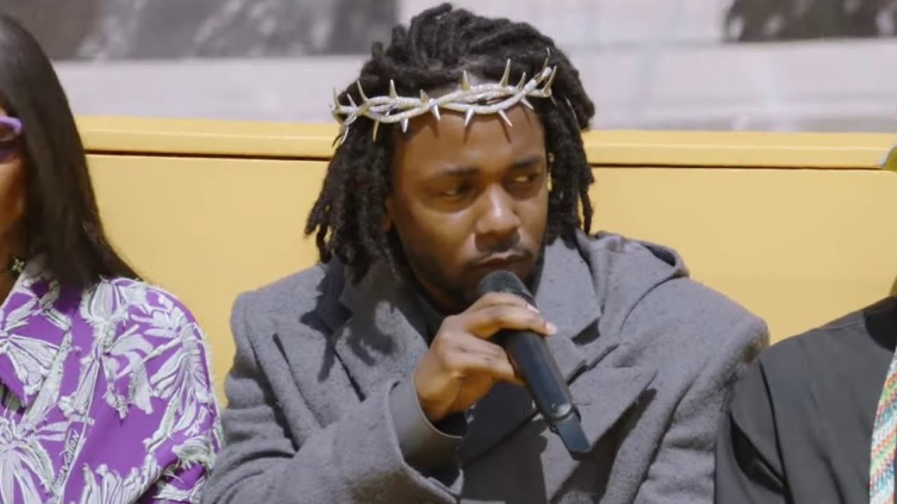 Kendrick Lamar is in Europe right now performing at various festivals and high-end events. A couple nights ago he did an intimate set at Cannes Lions Festival sponsored by Spotify, he's playing Milano Summer Festival tonight, and he's headlining Glastonbury's Pyramid Stage on Sunday, among other gigs. One of the more unconventional appearances was a performance at Louis Vuitton's showcase during Paris Fashion Week today. Kendrick rapped songs from Mr. Morale & The Big Steppers while seated with the onlookers alongside the catwalk as the various fashion plates marched along. During his performance, Kendrick rocked a crown of thorns (as seen on the new album cover) and shouted out the late Louis Vuitton creative director Virgil Abloh. Check out footage below.