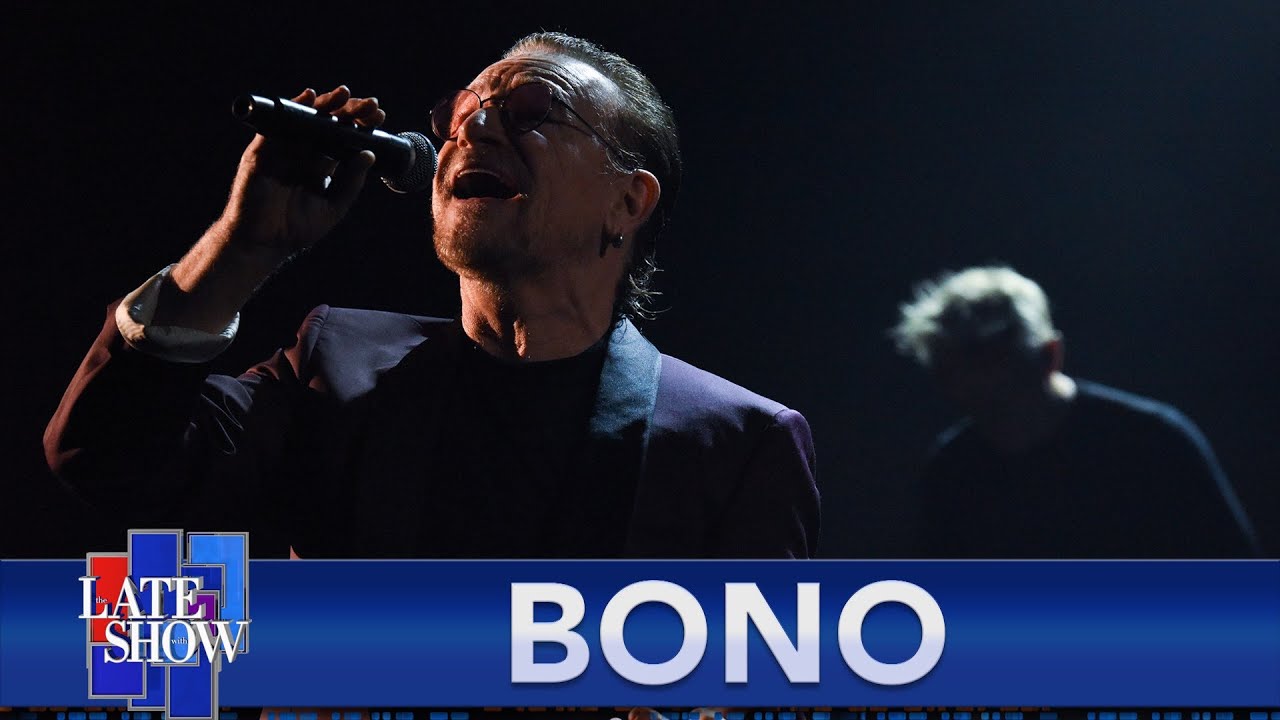 Bono has been out there promoting his new memoir Surrender for weeks, and he continued doing so last night with a visit to The Late Show. On the show, he sat for three separate interview segments with Stephen Colbert and sang "a special arrangement" of U2's 1987 mega-hit "With Or Without You" preceded by an excerpt from the book about the making of the song.