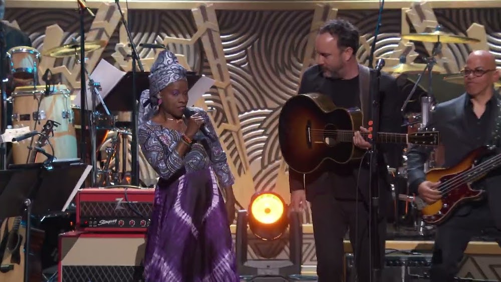 Last night, CBS aired Homeward Bound: A Grammy Salute To The Songs Of Paul Simon, which was filmed back in April at the Pantages Theatre in Hollywood. The evening featured a performance from Dave Matthews and Afropop icon Angélique Kidjo, who covered Simon's "You Can Call Me Al" with Bakithi Kumalo on the fretless bass. (Kumalo famously played the fretless bass on Simon's 1986 LP Graceland; he is the last living member of the Graceland band.) Matthews and Kido also performed "Under African Skies."