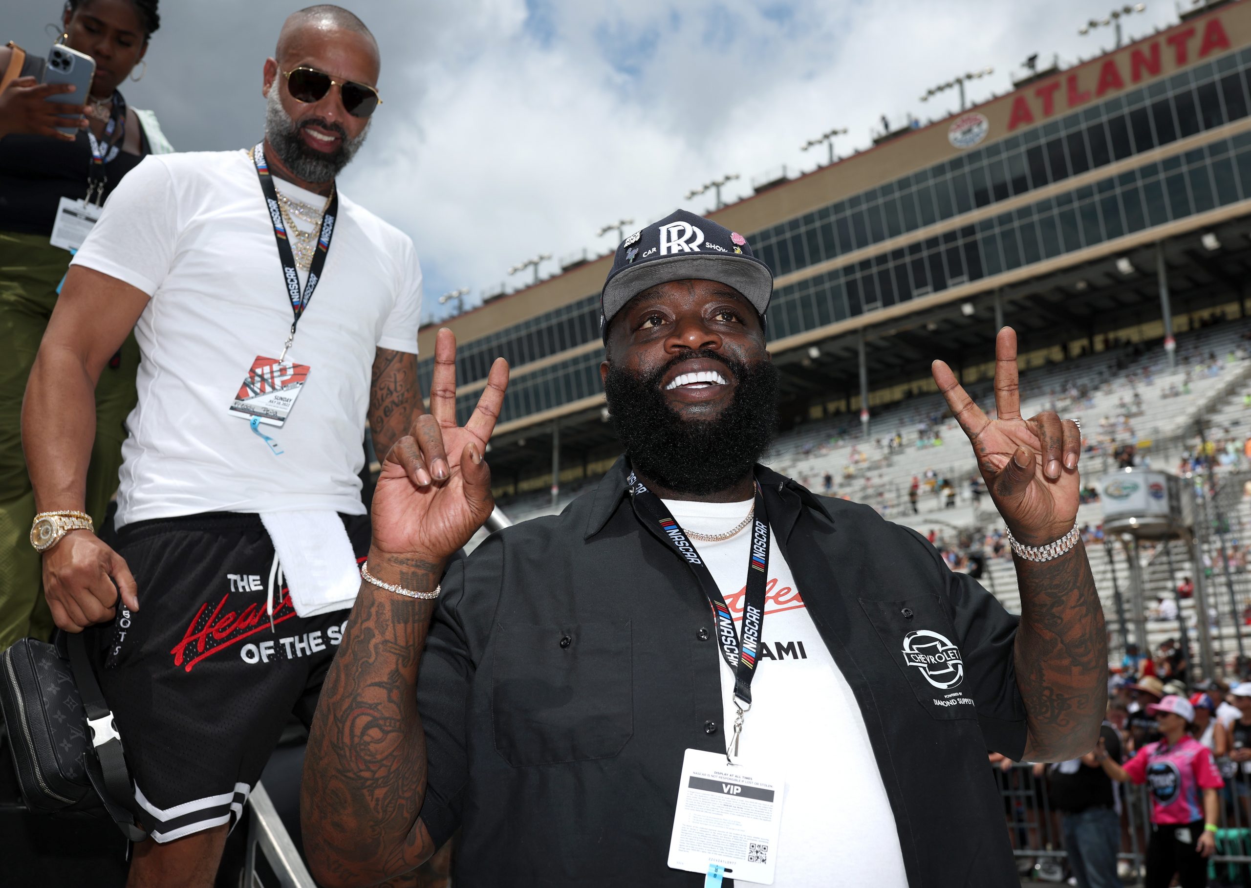 HAMPTON, GEORGIA – JULY 10: Rapper Rick Ross walks off stage during pre-race ceremonies prior to the NASCAR Cup Series Quaker State 400 at Atlanta Motor Speedway on July 10, 2022 in Hampton, Georgia. (Photo by James Gilbert/Getty Images)