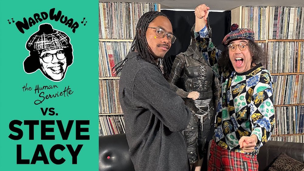 Just weeks after performing at the 2023 Grammys with Thundercat, Steve Lacy got the Nardwuar interview treatment. Visiting Neptoon Records in Vancouver, Lacy talked to Nardwuar about his first guitar -- "a Strat in a box set with an amp" -- the inspiration he takes from DIY pioneer R. Stevie Moore, breaking long jump records in Youth Track, his favorite Raising Cane's order ("I used to get really stoned [and get] a box combo, four chicken shrimps with fries"), TikTok's sped-up version of his #1 hit "Bad Habit," and more. Watch Lacy accept gifts (guitar pedals, vinyl) from Nardwuar below.
