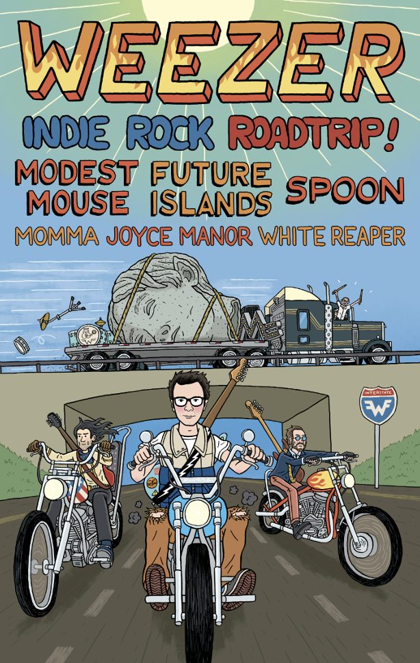 Weezer's "Indie Rock Roadtrip" will feature a rotating lineup that includes Modest Mouse and Momma, Future Islands and Joyce Manor, and Spoon and White Reaper. It'll run throughout the summer, kicking off in Alabama in June and ending in San Diego in September. Tickets for the shows go on sale this Friday (March 3). Check out the full itinerary below.