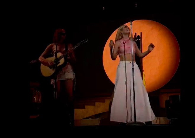Last night was MUNA's last show with Lorde, and Lorde made a special moment out of it. Lorde's tour brought her to Adelaide Entertainment Centre, and for the first song of her encore set, she invited MUNA out onstage. Lorde covered MUNA's "Kind Of Girl," one of the singles from their great self-titled 2022 album, while MUNA played acoustic and sang backup harmonies. It was pretty clear from the performance that Lorde loves this song. Watch a fan-made video below.