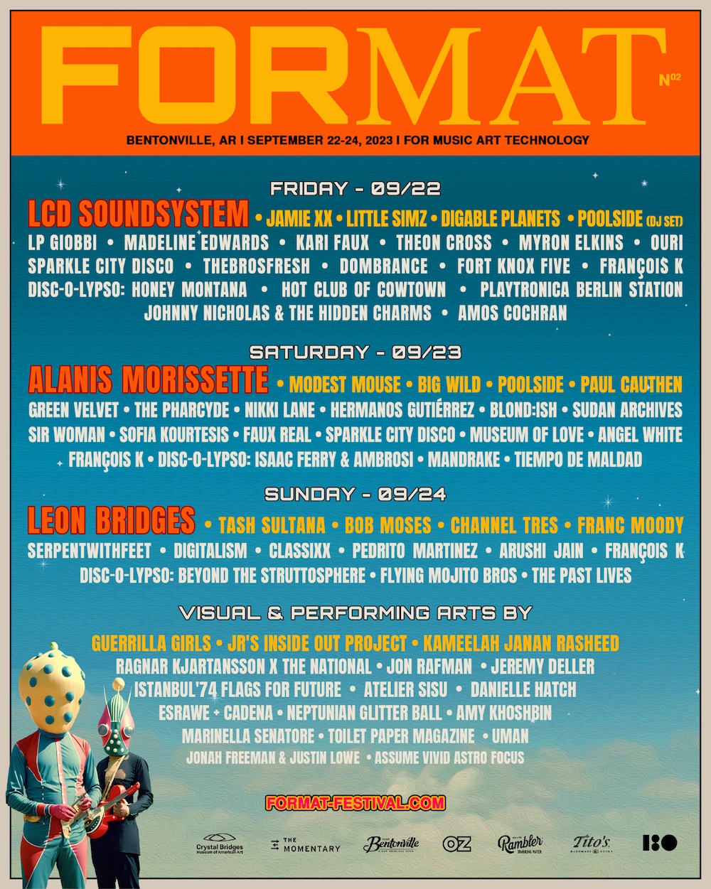 Last year, the new music festival FORMAT held its inaugural edition in the Ozarks town of Bentonville, Arkansas. This year, FORMAT is coming back with another pretty-impressive lineup. This year's FORMAT goes down 9/22-24, and its headliners are Alanis Morissette, LCD Soundsystem, and Leon Bridges.