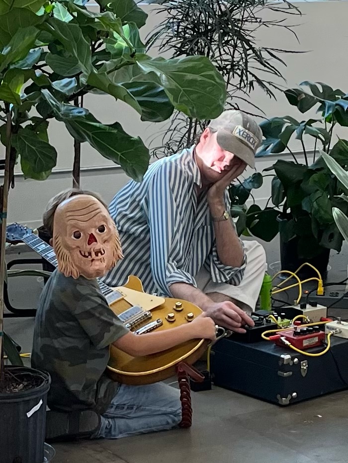 Cox even invited a 6-year-old to play on his Les Paul while he performed the improvisational set, as his father Jon Napoles told us over email. His kid wore a mask from nearby Wuxtry Records as Cox let "him mess with the guitar while tweaking knobs. "Pretty cool first concert for a 6 year old," Napoles wrote. True!