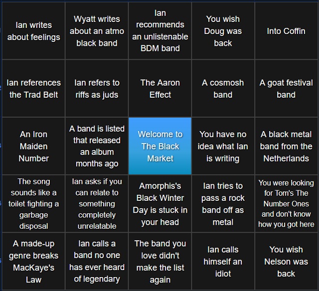 It's hot. Much like you, I am boiling in a heatwave that has thoroughly cooked my brain. So let's take a break from the smart stuff and play a game. How well can you navigate Encyclopaedia Metallum? I have a challenge to test your skills. It's a cross between competitive bingo and a scavenger hunt for people who like Black Sabbath, and it will take you deeper than you may have ever been into the internet's premier heavy metal archive.