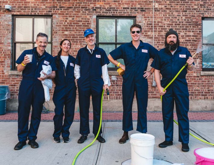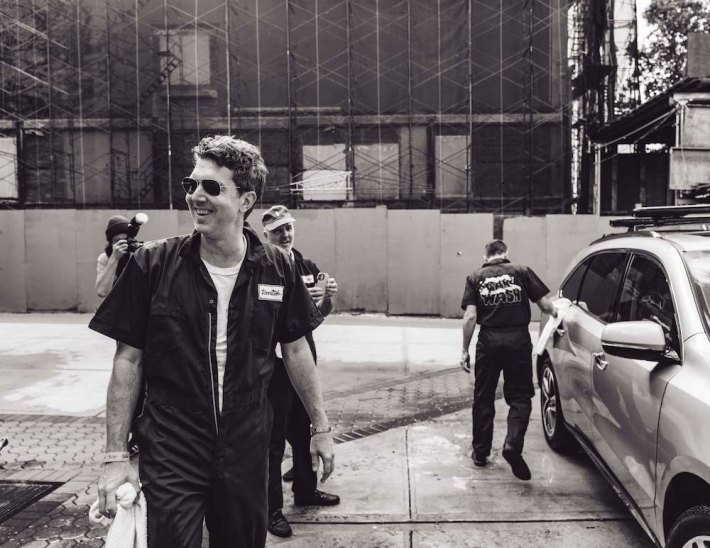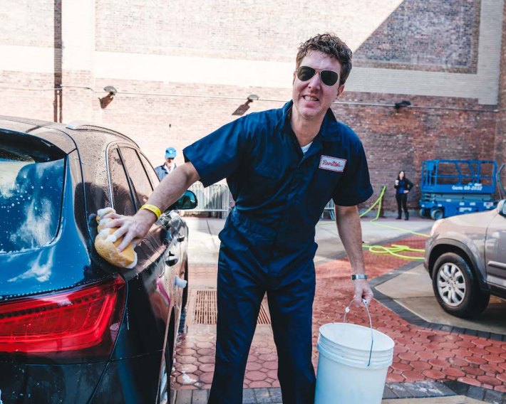 Well, they figured out the details. After originally being scheduled for Friday the 13th, the car wash got pushed up to the morning of the show, and most of the band were out on the streets slinging suds starting at 10AM. The Washmen, if you will -- they did. Hamilton Leithauser, Walter Martin, Peter Bauer, and Paul Maroon were all present -- the only one missing was drummer Matt Barrick, though the band's manager lent a hand in his absence.
