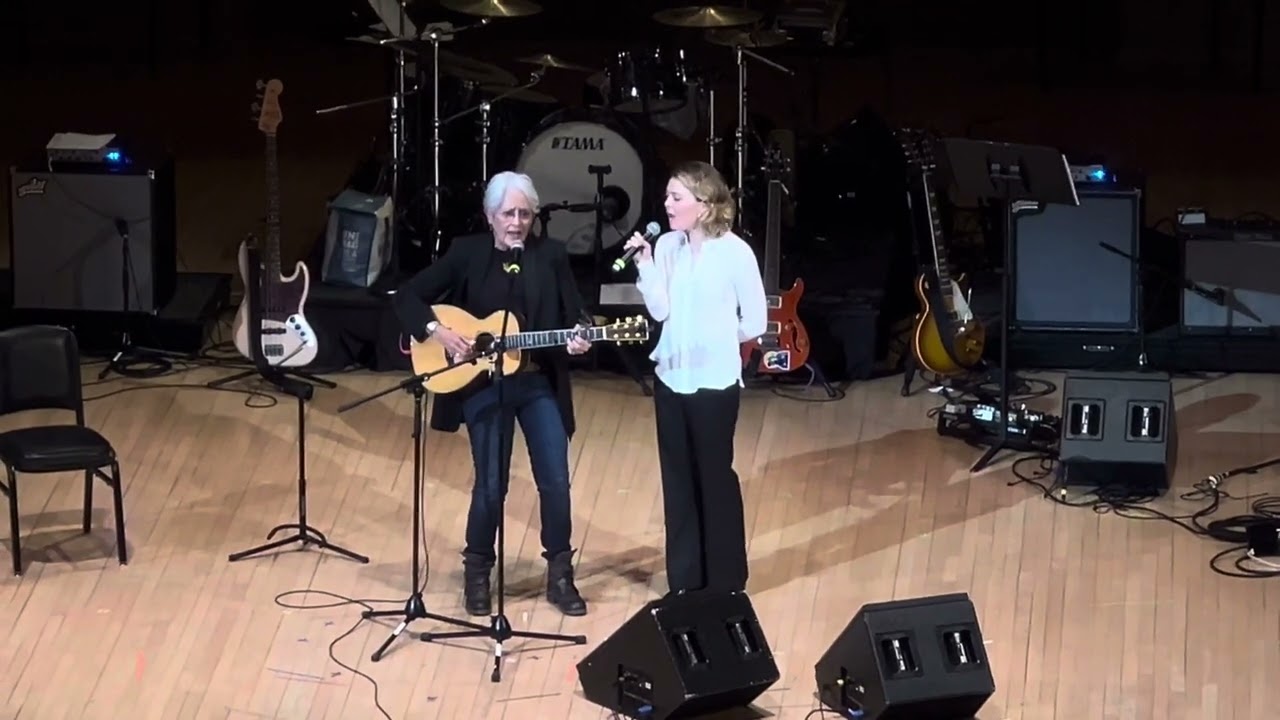 Baez was one of the last artists to perform at the show, and she brought out Rogers for her cover of Bob Dylan's "Don't Think Twice, It's All Right." At the very end of the concert, after Gogol Bordello's set, Baez and Rogers led an ensemble of artists that performed that night with a rendition of "We Shall Overcome." Here's video:
