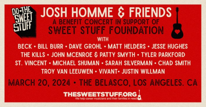 Last year, Queens Of The Stone Age released their album In Times New Roman… and toured behind it. Now, frontman Josh Homme is putting on an all-star fundraiser for the Sweet Stuff Foundation, a nonprofit that Homme and his family started in 2013. The foundation raises money for musicians and recording engineers who are dealing with illness and disability, and the shows goes down 3/20 at the Belasco in Los Angeles. Its lineup is full of big names.