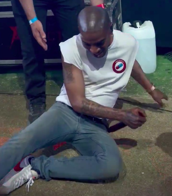 Yesterday afternoon, Kid Cudi made his festival return at Coachella's dance-centric Sahara tent, a stage that Cudi headlined in 2019. While performing his part from the 2009 David Guetta track "Memories," Cudi leapt from the stage into the photo pit. When he landed, one of his feet slid out from under him, and he couldn't get back up. Security helped him to the backstage area as the music kept playing. Footage of the fall looks nasty.