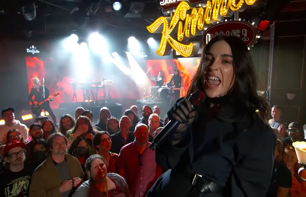 Annie Clark is back on her rock-star shit. Clark released the relatively jagged and heavy new St. Vincent album All Born Screaming earlier this year, and she seems to be enjoying stuff like singing while crowdsurfing at small club shows. Last night. St. Vincent was the musical guest on Jimmy Kimmel Live, and she made a theatrical show of her performance.