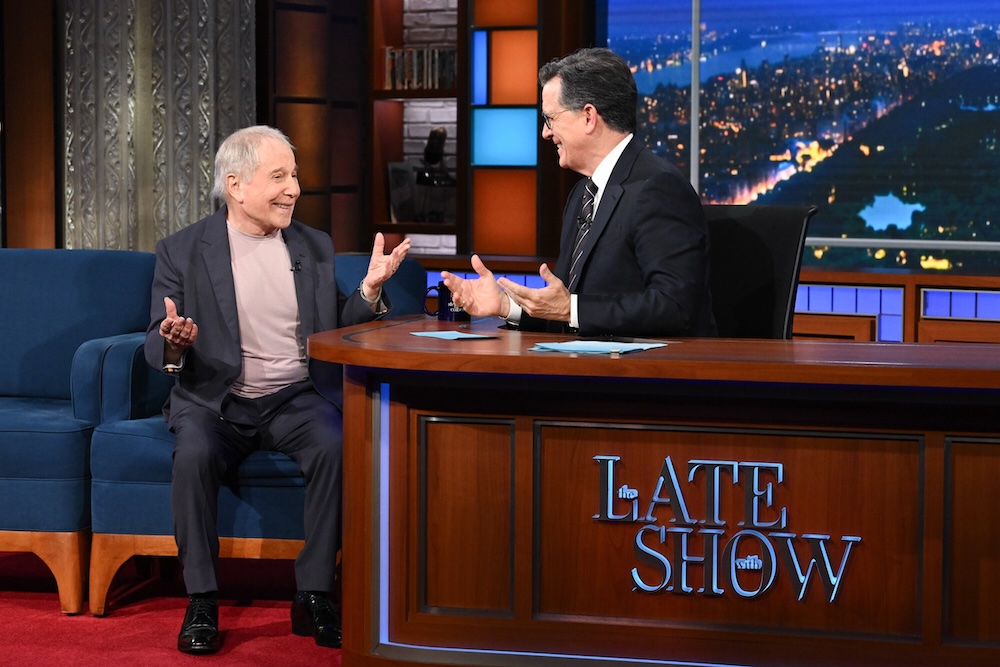 Paul Simon and Stephen Colbert sure seem to get along. Last year, Simon went on Stephen Colbert's Late Show and named his favorite Paul Simon songs, as well as one that he loathes. Since that time, Simon has gone back out on the road. Simon finished a farewell tour in 2018, and he's recently been dealing with serious hearing loss. Also, he's 83 years old. Nevertheless, he's playing a series of intimate shows right now. As you might imagine, that presents some challenges. Last night, Simon was back on Colbert, and he talked about it a little bit.