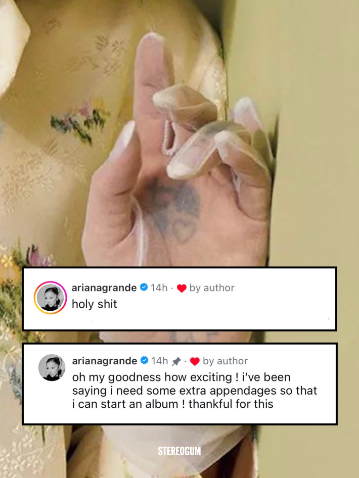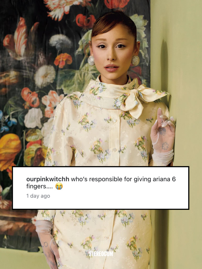 Our own Scott Lapatine theorizes that this is a PhotoShop fuckup rather than an AI fuckup. Either way, Grande seems to think it's pretty funny. In an Instagram comment on the six-finger situation, Grande writes, "oh my goodness how exciting ! i’ve been saying i need some extra appendages so that i can start an album ! thankful for this."