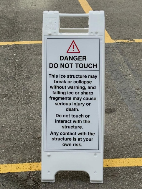 Apparently, the Iceman structure is surrounded by signs telling fans not to touch the ice because it's dangerous.