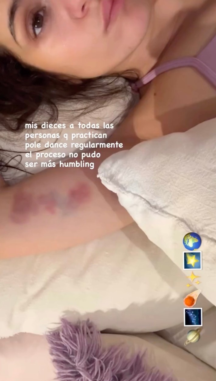 On her Instagram story, Rosalía posted this image. The translation: "Major props to everyone who practices pole dance regularly — the process couldn't have been more humbling."