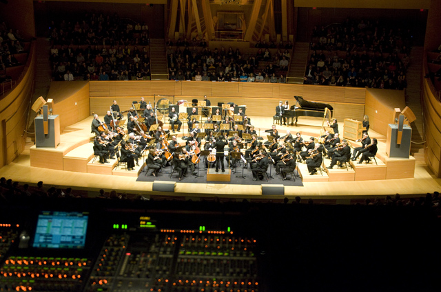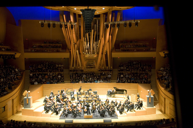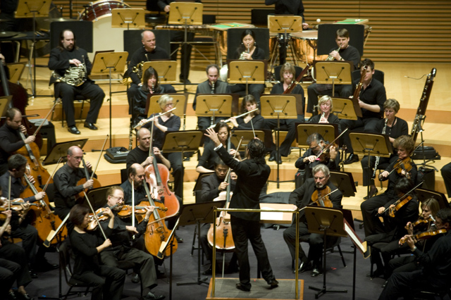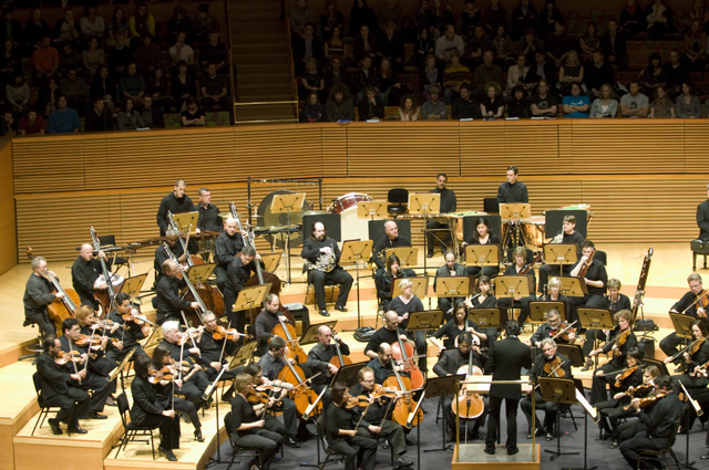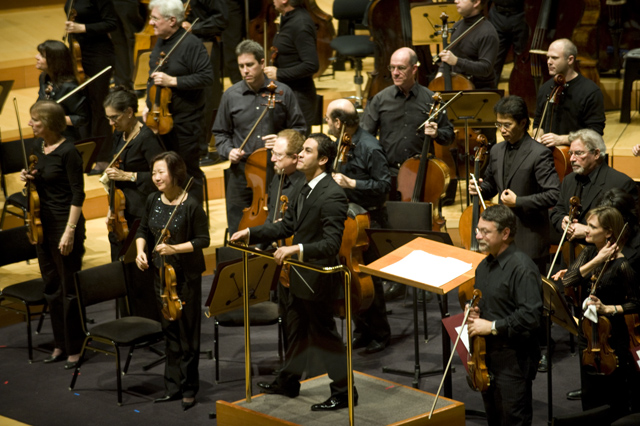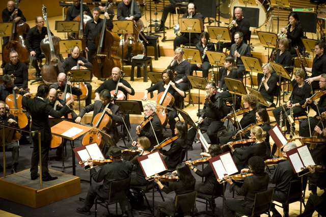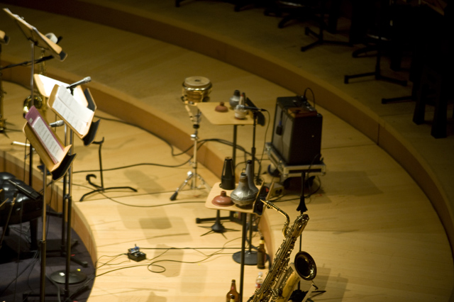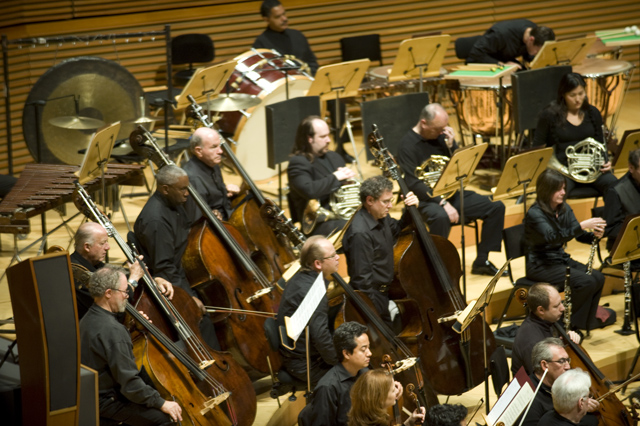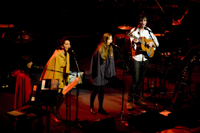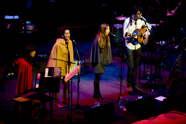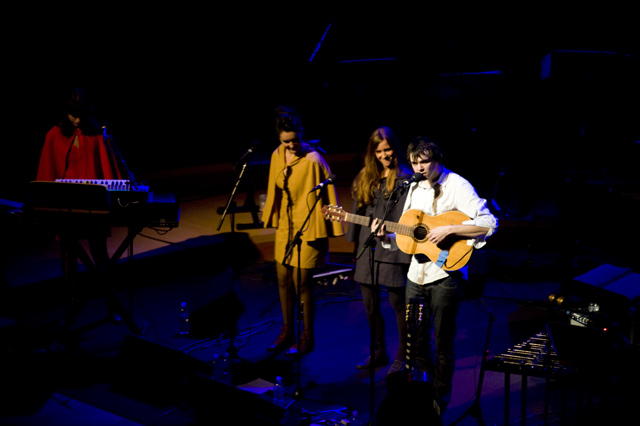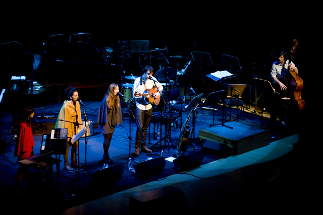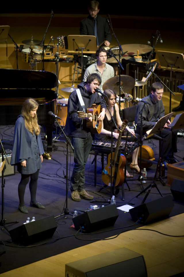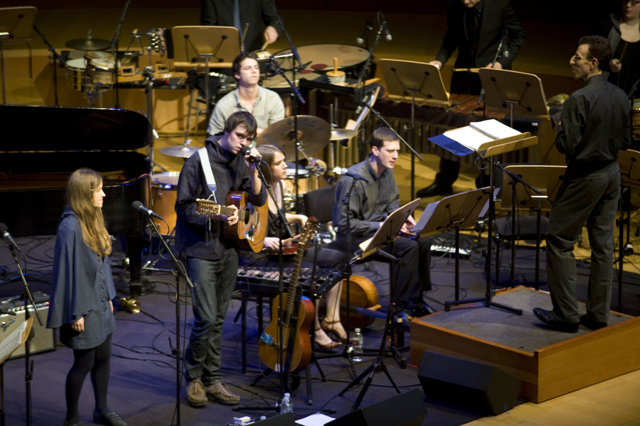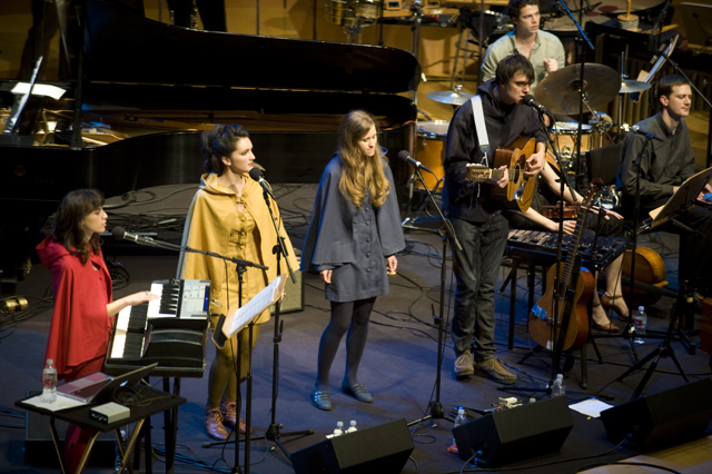 Dirty Projectors play well in lots of environments, though "A Very Special Night With ... " is a frequent and strong one for them lately. This Very Special Night featured DP co-headlining with L.A.'s Philharmonic Orchestra, who began the night with classical pieces that Dave Longstreth selected -- two from Ligeti (you might know him from 2001: A Space Odyssey) and others from Wagner (you might know him from every war movie soundtrack), and Ravel. Chamber ensemble Alarm Will Sound joined Dirty Projectors for The Getty Address.